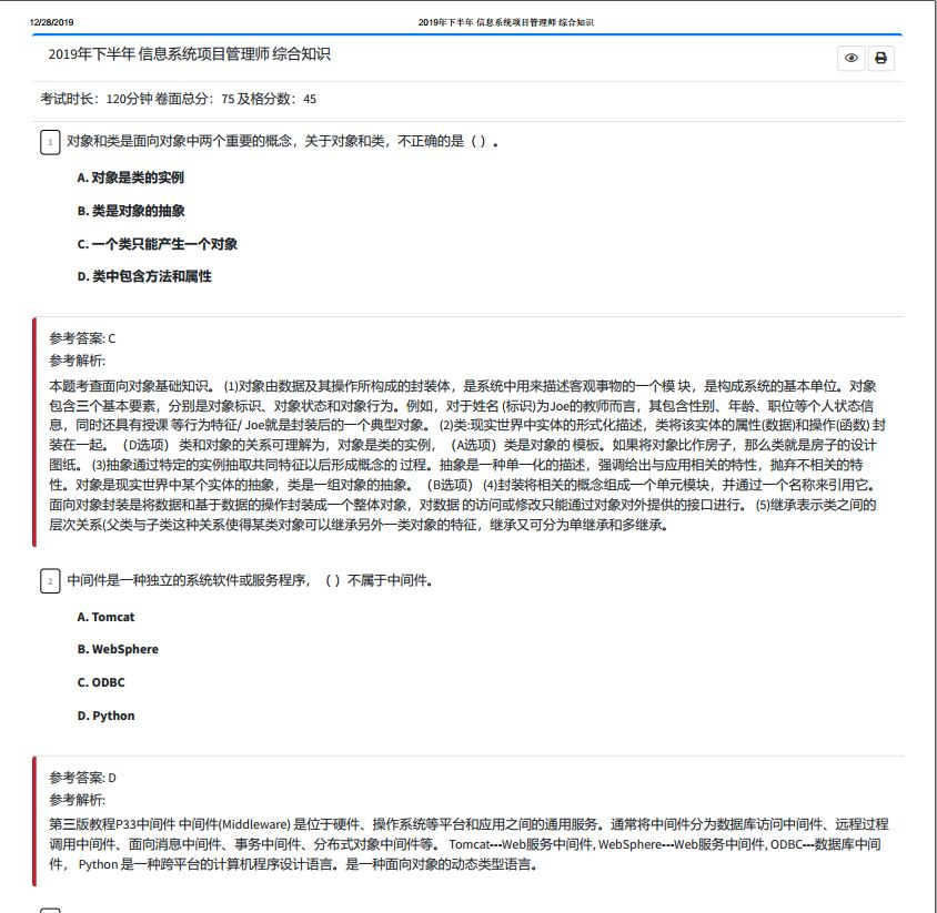 软考Web版第一版功能有题库、在线答题、答题记录、和错题集、打印试卷等。页面采用的是响应式设计。Bootstrap 4设计目标是移动设备优先,然后才是桌面设备。但我在做的过程中还是以桌面设备优化考虑,再适应于移动设备。目前是两者都支持,是自适应的。下面看下截图: